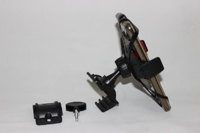 Cocok untuk holder Handphone/GPS/MP/PDS, Desain penjepit tipe tiga bagian yang bisa menjepit ukuran sepeda dengan diameter yang berbeda, Dudukan yang memiliki putaran 360 Derajat.